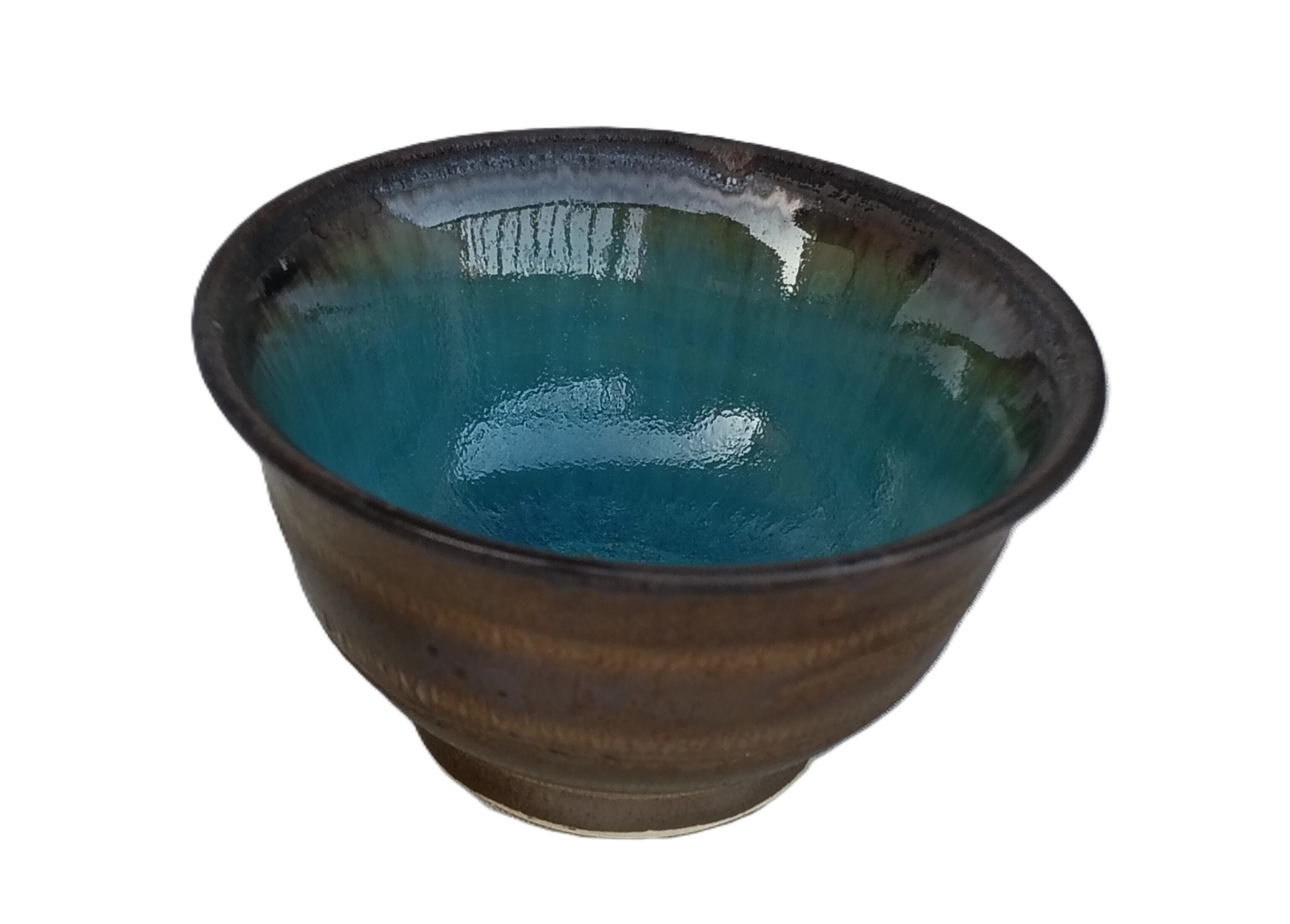 ラスターの輝きと内側のコバルトブルーが美しく、シャープさを添える縞はどんな大きさの手にも滑らず馴染み、ふっくら開く口当たりは柔らかです。