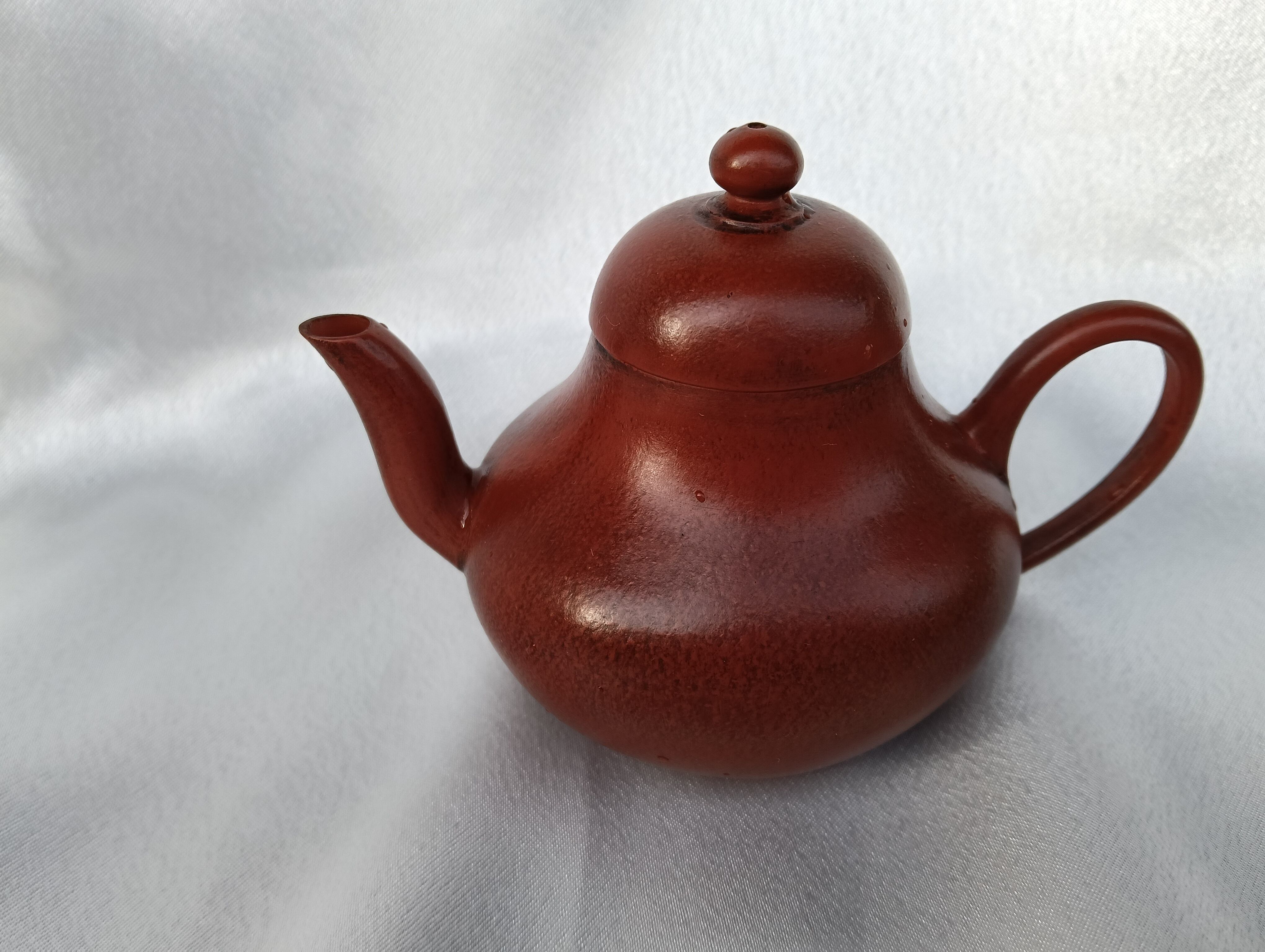 ひょうたんを思わせる形に曲がった注ぎ口が特徴の茶壺です。